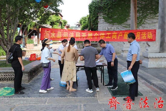 法治是最好的营商环境。根据“个体工商户服务月”活动要求,沂水县司法局充分发挥法律服务职能,组织公证、普法、公共法律服务等科室人员为彩虹小镇个体工商户开展法律咨询和法治体检活动。 宣传人员走进一个个摊位和商铺,积极主动“送法规”,精准及时“送政策”,广泛听取经营者意见建议,致力于推动个体经济持续向好发展。本次活动共发放《以案释法读本》《民法典100问》《公共法律服务指南》等法律法规书籍和各类宣传资料200余份,为持续优化营商环境注入法治力量。