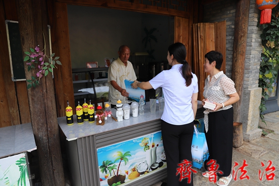 齐鲁法治(临沂讯)于清林 7月19日,由临沂沂水县市场监管局牵头,县司法局、县税务局、县人社局等多家单位共同参与的“个体工商户服务月”宣传活动在雪山彩虹谷--彩虹小镇商业区举办,吸引了游客和附近商户的驻足参与。