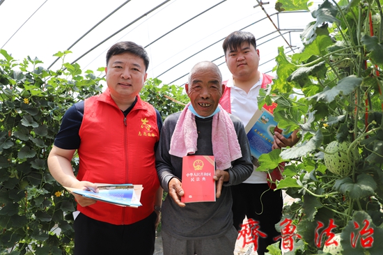 齐鲁法治(济宁讯)于清林 “这个民法典里面规定的都很好,俺种瓜跟人家签合同,我都是从这民法典里面看的法条,再问问咱的法律顾问,对比着合同上面的内容,看看有哪些是不合理的地方,然后修改合同,避免以后出现什么问题”家住金乡县胡集镇的马大爷跟普法志愿者说道。