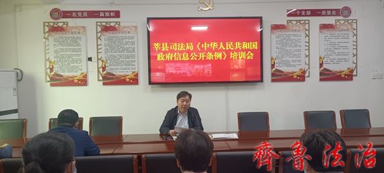 齐鲁法治(聊城讯)于清林 为深入贯彻落实党的二十大精神和习近平法治思想,全面提升党员干部政府信息公开法律法规的意识,5月12日,聊城莘县司法局举行《中华人民共和国政府信息公开条例》培训会。局党组书记、局长张向阳主持培训会并做专题讲座,局机关和局属单位全体干部参加培训会。