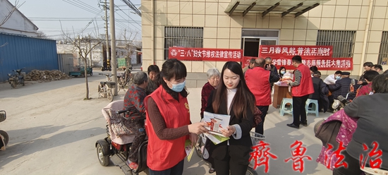 齐鲁法治(聊城讯)于清林 春风三月学雷锋,普法惠民办实事。为进一步深化广大群众对“奉献、友爱、互助、进步”的志愿服务精神的理解,把法律服务知识送到群众身边,共建法治社会,3月4日,聊城莘县司法局大王寨司法所联合镇妇联、新时代文明实践站开展了丰富多彩的普法宣传活动,以志愿服务涵养乡村文明,以实际行动传承雷锋精神。