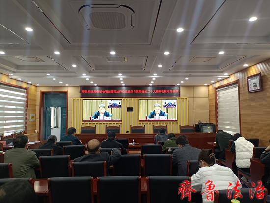 齐鲁法治(聊城讯)于清林 11月3日,司法部召开全国司法行政系统学习贯彻党的二十大精神电视电话会议,认真学习贯彻习近平总书记重要讲话精神,认真贯彻落实党中央关于学习宣传贯彻党的二十大精神的决定,落实“全面学习、全面把握、全面落实”要求,研究部署全国司法行政系统学习宣传贯彻党的二十大精神工作。部党组书记、部长唐一军出席会议并讲话。莘县司法局组织党员干部在莘县分会场收听收看了会议视频直播。