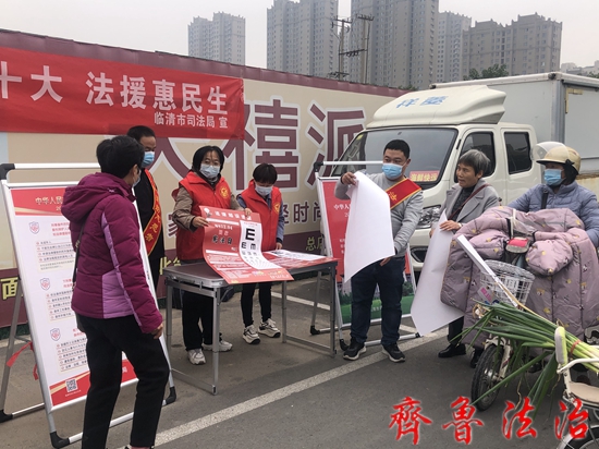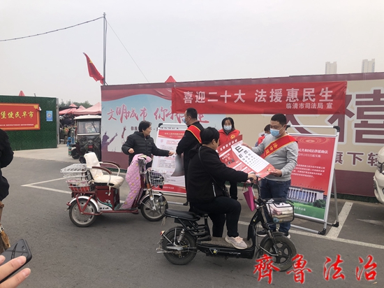 齐鲁法治(聊城讯)于清林 10月14日上午,聊城临清市司法局在三里堡便民早市组织开展了“喜迎二十大 法援惠民生”主题宣传活动。