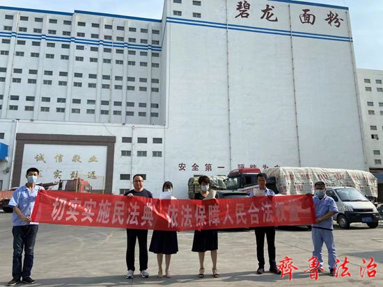 潍坊寿光市司法局化龙司法所联合镇综治办、安环办到寿光市碧龙面粉厂开展“送法进企业”普法宣传活动。
