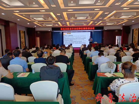 齐鲁法治(潍坊讯)董承臻 6月8日,潍坊市寿光市助企专题法治培训班在万华大酒店开班。为进一步增强防水企业法律法规意识,提升抵御风险能力,台头镇、寿光市防水行业协会共同组织企业负责人及管理人员参加培训。公司法律事务及风险防范专家、山东国曜琴岛律师事务所的董学风律师,围绕防水行业合同风险管理、应收账款安全与索赔、账款结算中的特殊事项等容易出现法律风险的经营管理环节进行了详细讲解,并提出了很多针对性的工作预案和解决办法,受到参训人员的一致好评。