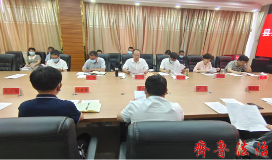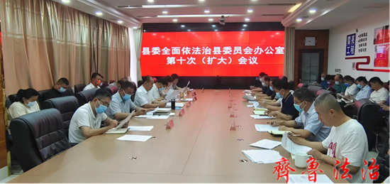 6月7日下午,聊城阳谷县召开县委全面依法治县委员会办公室第十次(扩大)会议。县委常委、政法委书记、依法治县办主任袁广斌主持,依法治县办全体成员、各乡镇(街道)依法治乡(镇、街)办主任参加。