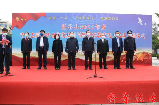 齐鲁法治(聊城讯)马丹鸣 5月10日上午,由阳谷县委政法委、县法学会联合县司法局、县公安局、县法院、县检察院、县科协、团县委举办的,“2022年青年普法志愿者法治文化基层行暨反邪教宣传月”活动在聊城阳谷县法治广场正式启动。