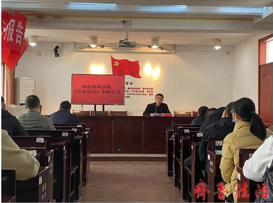 齐鲁法治(聊城讯)蔡绍辉 为进一步贯彻落实好《中华人民共和国公务员法》,加深全局公务员对相关法律法规的理解和把握,规范和提升公务员管理工作,近日,聊城阳谷县司法局组织召开公务员法培训会议。