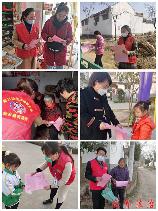齐鲁法治(济宁讯)于清林 为增强我县广大妇女群众办事依法、遇事找法、解决问题靠法的自觉性,不断维护妇女的合法权益,逐步提升妇女同志的自我保护和维权能力,进入3月份以来,济宁金乡县司法局结合村(社区)法律顾问“一月一主题”活动,组织全体村居法律顾问开展了“习近平法治思想基层行”系列活动之“情暖3·8节 送法献爱心”活动。
