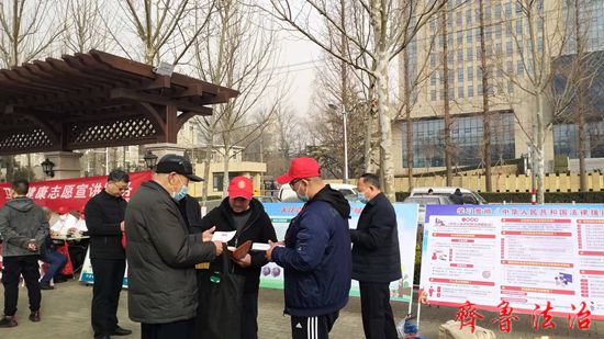 在全国第59个学雷锋纪念日来临之际,3月4日上午,烟台招远市司法局在市府前广场组织开展了以“学雷锋、树新风、做榜样”为主题的普法志愿服务活动。局机关及所属各单位志愿者参加了活动。