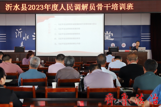 齐鲁法治(临沂讯)于清林 为深入贯彻党的二十大精神,进一步提升基层人民调解队伍综合素质,充分发挥人民调解在化解矛盾纠纷维护社会稳定中的作用,6月7日,临沂沂水县司法局举办了2023年度人民调解员骨干培训班,县司法局党组书记辛惠作动员讲话,市司法局人民参与和促进法治科科长方晓华受邀参会并授课,各基层司法所所长,县司法局调解中心、各乡镇(街道)调委会专职人民调解员,各行专调委会主任参加了此次培训。