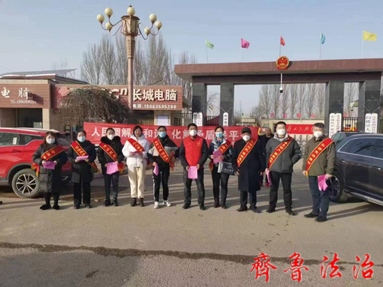 齐鲁法治(聊城讯)于清林 为进一步提升群众学法、用法的能力,为欢度春节营造了良好的法治氛围,1月19日,聊城阳谷县司法局阎楼司法所在镇驻地主干道利用大批群众过节逛集市的有利时机,积极联合镇专职人民调解员、法律顾问团队等开展《人民调解促和谐、化解纠纷保平安》法治宣传活动。