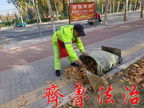 山东安尔城市环境服务有限公司组织各部门开展落叶清扫专项整治行动。