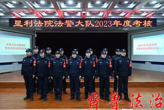 齐鲁法治(东营讯)李春军 年末将至,为全面提高司法警察警务工作履职能力和实战能力,全面检验司法警察年度训练成效,12月28日,东营垦利法院法警大队组织进行2023年度考核,法警大队全体干警参加。