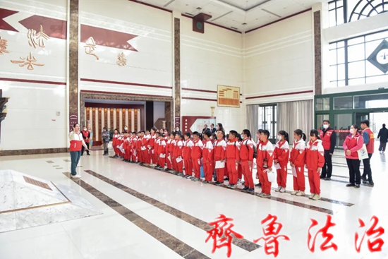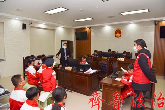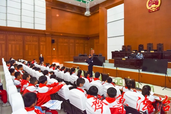 齐鲁法治(东营讯)李春军 为大力弘扬宪法精神,进一步培养青少年学法、知法、懂法、用法的法治意识,在第六个“宪法宣传周”来临之际,东营市东营区法院邀请集输小学部分师生及家长“零距离”学习宪法法律知识,多角度接触法院工作,沉浸式接受法治教育。