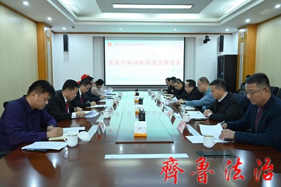 齐鲁法治(东营讯)李春军 11月29日,垦利区深化执行联动机制建设推进会议在垦利法院召开,市法院执行局局长解旭明,区委常委、政法委书记、统战部部长董强出席会议并讲话,区法院党组书记、院长张志刚主持会议,区检察院、市公安局垦利分局、区自然资源分局等8家联动单位参加。