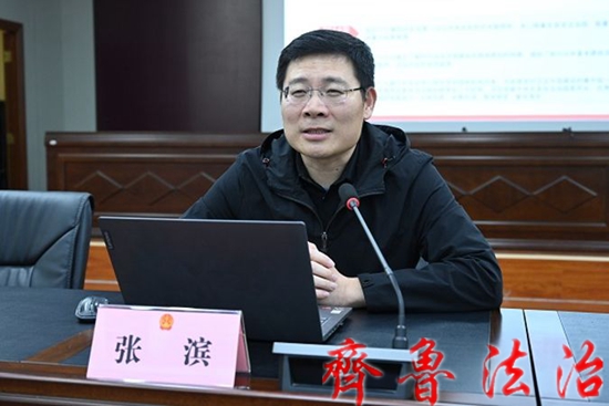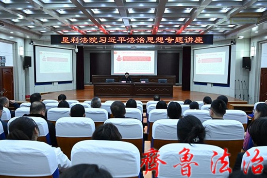齐鲁法治(东营讯)李春军 为全面贯彻落实党的二十大精神,深入学习领会习近平法治思想,不断提高法院干警政治素养和理论水平,11月9日下午,东营市垦利区法院政治部主任、党总支专职副书记张滨为全体干警作习近平法治思想专题讲座。
