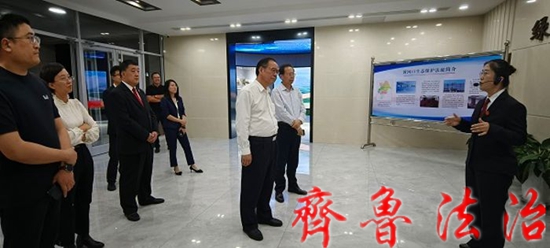 蒋国长一行参观了永安法庭生态保护展厅,了解生态保护法庭的建设、审判工作运行以及近年来法院为融入黄河流域生态保护和高质量发展大局在环境资源审判方面的主要工作成效和下一步司法服务提升计划。蒋国长高度赞扬了法院积极主动服务黄河重大国家战略的做法,并对生态保护法庭建设及审判职能延伸提出了意见和建议。