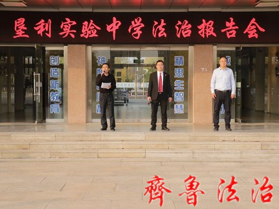 齐鲁法治(东营讯)李春军 10月30日, 东营垦利区实验中学法治副校长、区法院刑事审判庭庭长温国鹏走进校园,为2000余名在校师生送上一堂名为《关爱青春 与法同行》的法治报告会。