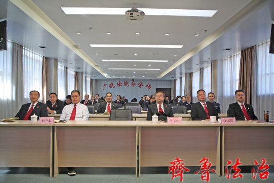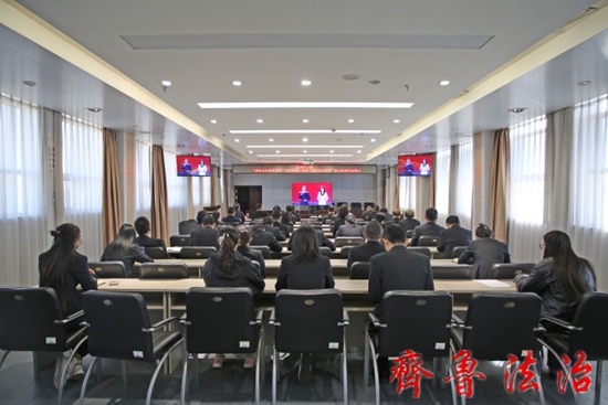 10月20日上午,东营广饶法院组织全体干警观看“忠诚的力量-‘讲好山东政法故事’创意传播大赛暨‘我的政法故事’征文优秀作品展示”。