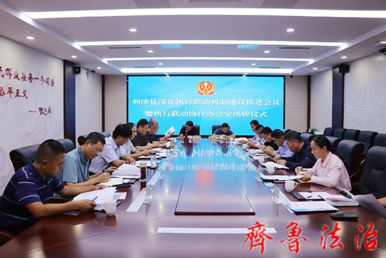 齐鲁法治(东营讯)李春军 9月26日,东营利津县深化执行联动机制建设推进会议暨执行联动协作办公室揭牌仪式在县法院举行,县委副书记、政法委书记杨凯出席会议并讲话,县法院党组书记、院长孙学军主持会议,县直有关部门单位负责同志参加会议。