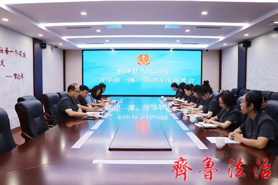 利津法院召开2023年秋季学年“开学第一课”安排部署会议,党组副书记盖盛永参加会议并讲话,担任法治副校长的干警和青年普法志愿者干警参加会议。会议邀请凤凰实验幼儿园园长刘令燕参
