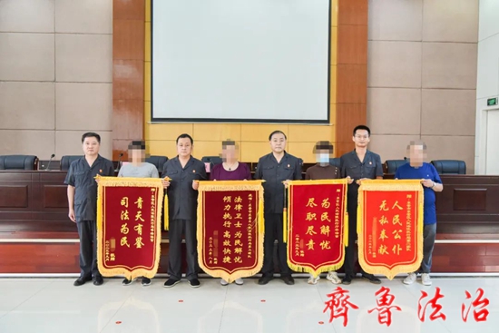 会后,现场参会的被害人代表向东营区人民法院送上锦旗,对执行干警表示由衷的感谢,认为东营区人民法院“为民解忧、尽职尽责”,捍卫了法律尊严,维护了群众利益。