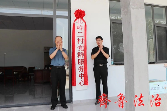 齐鲁法治(东营讯)李春军 9月5日上午,东营利津法院帮扶村盐窝镇北岭二村党群服务中心举行揭牌仪式。北二村负责同志主持揭牌仪式,利津法院党组成员、副院长王学臣与盐窝镇东一管区长张子群共同为北二村党群服务中心揭牌,县法院党组成员、政治部主任岳振兴,法院驻村干部,北二村两委成员及部分村民代表参加揭牌仪式。