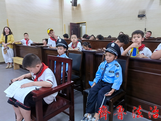齐鲁法治(东营讯)许新华 近日,东营胜利二小一年级、二年级的四十余名少先队员走进东营河口法院,参加暑期社会实践活动。