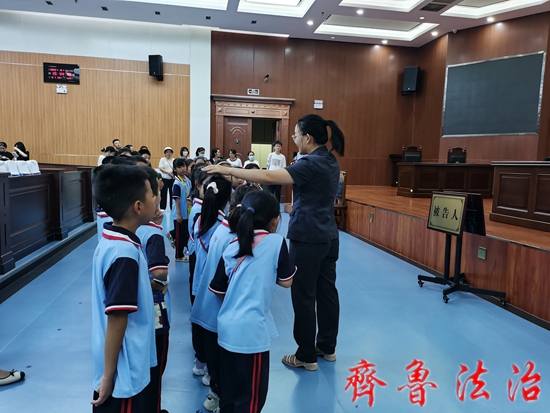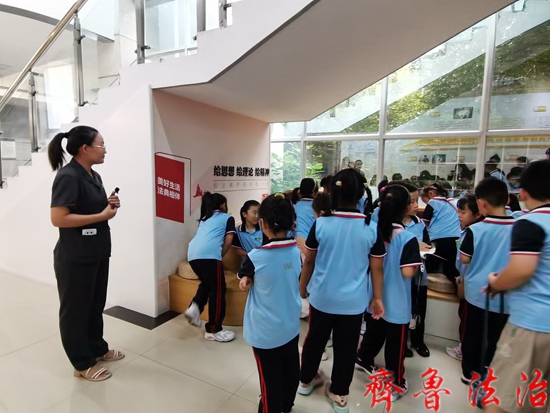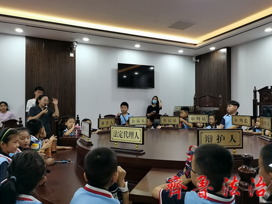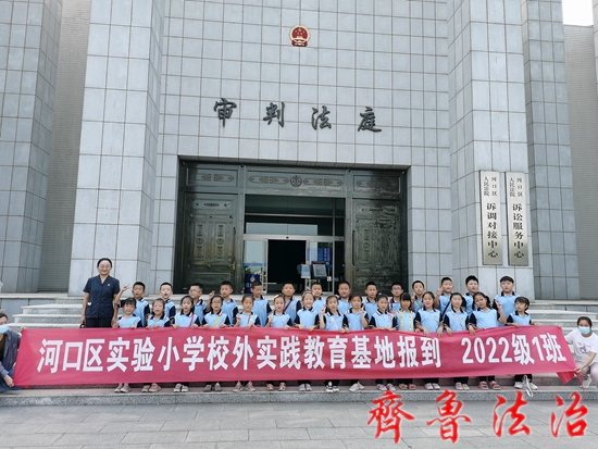 齐鲁法治(东营讯)许新华 近日,东营市河口区实验小学2022级一中队的30余名学生走进东营河口法院,参加少先队暑期社会实践,零距离感受法院氛围,沉浸式体验法治环境。