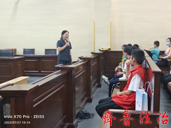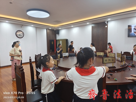 齐鲁法治(东营讯)许新华 为了丰富中小学生的暑期生活,增强法治意识,提高法治素养,东营河口法院组织开展“‘暑’你知法”系列法治实践活动。近日,审判法庭迎来了第一批前来打卡的少先队员。