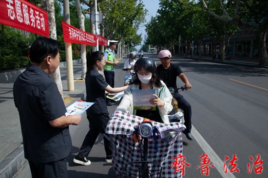 齐鲁法治(济宁讯)于清林 为进一步增强群众交通安全意识,有效预防和减少交通事故及纠纷的产生。近日,济宁金乡法院联合金乡县交通运输局走进王杰广场,开展了以“送法上门 安全同行”为主题的志愿服务活动。