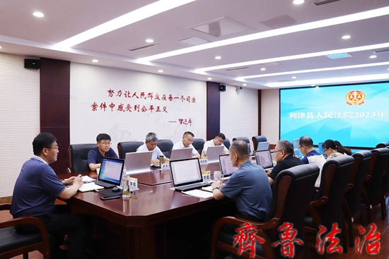 齐鲁法治(东营讯)李春军 8月21日上午,东营利津法院召开党组会议,传达学习习近平总书记在8月17日中共中央政治局常委会会议上的重要讲话、在首个全国生态日之际作出的重要指示精神,研究部署近期重点工作。党组书记、院长孙学军主持会议并讲话,班子成员、专委参加会议。