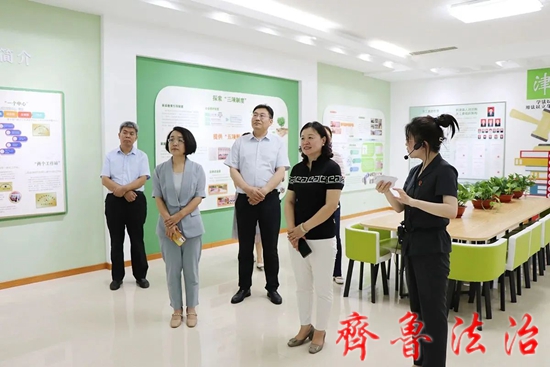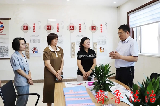 周玲一行参观了利津法院幸福家庭驿站及青少年法治保护教育基地,听取了妇女儿童工作及“津心和护”家事审判品牌介绍,详细了解了家事审判“五位一体”工作模式、“3221”家事审判经验及相关工作,并现场观看了家事审判普法视频。
