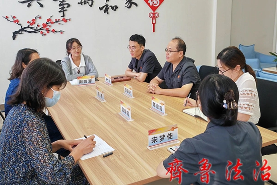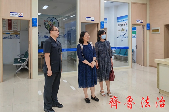 7月31日下午,山东政法学院实习巡查指导老师陈英一行2人,到利津法院巡查指导本校法学生实习情况,县法院党组成员、政治部主任岳振兴陪同。