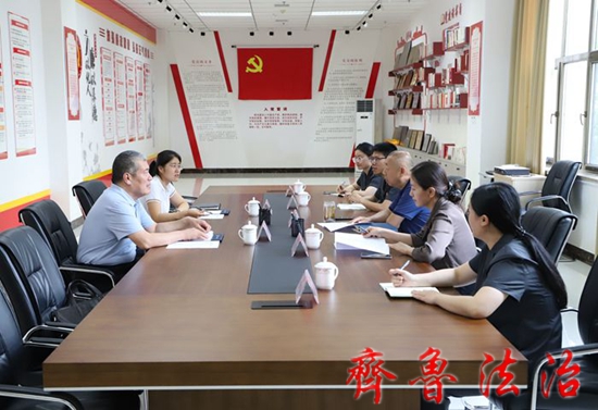 7月26日,省高院赔偿办主任孟健一行到东营中院调研指导。孟健一行参观了审判法庭、法院文化设施等,并召开座谈会。