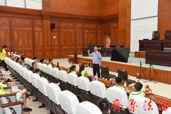 近日,来自东营区工会暑期托管班的30多名1-4年级小学生走进东营市东营区法院,参加“法院开放日”系列活动,沉浸式感受法治文化,体验不一样的精彩假期。