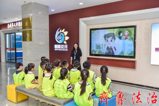 在未成年人审判社会工作站,孩子们观看校园欺凌交互动画和绘本课,在法治教育讲师的引导下从小树立起不被欺凌也不做欺凌者的良好意识。之后,孩子们又通过抽签,主演法治教育锦囊中的骑车上路、诈骗、盗窃等不同种类的法治教育题材戏剧,在参与体验中认识各类错误行为的不当与后果,切实增强法治意识。