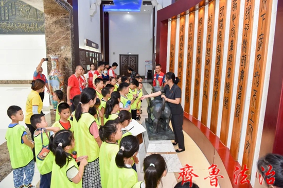 法鼎的意义、獬豸的传说、中华法制文化发展历程……法治文化长廊包含中国传统法治文化、中国法治历程,古文彰显法治底蕴,法官讲解通俗易懂,孩子们听得专心致志,对法治有了全面的认识和理解。