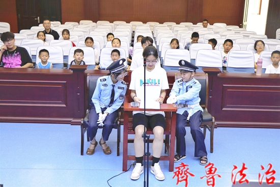 在利津法院少年法庭干警的带领下,小学员们参观了少年法庭法治教育保护基地,了解了校园欺凌、性侵害及预防未成年人犯罪的有关知识。