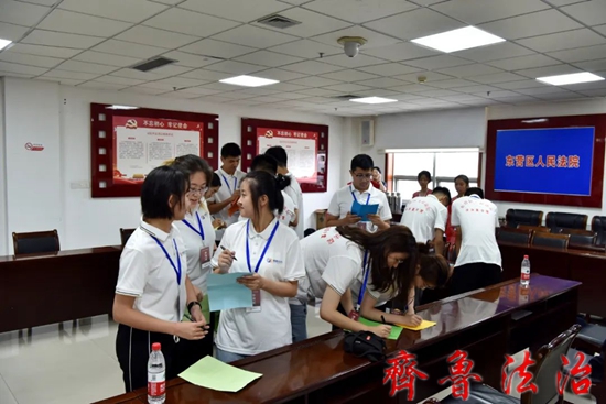 齐鲁法治(东营讯)李春军 夏日炎炎,骄阳似火。东营市东营区法院首届“法葵少年”法治素养提升营火热开营,通过前期线上报名,13名高中生和法学在读大学生参加本期夏令营活动,一起“遇见法院活动,预见职业未来”。