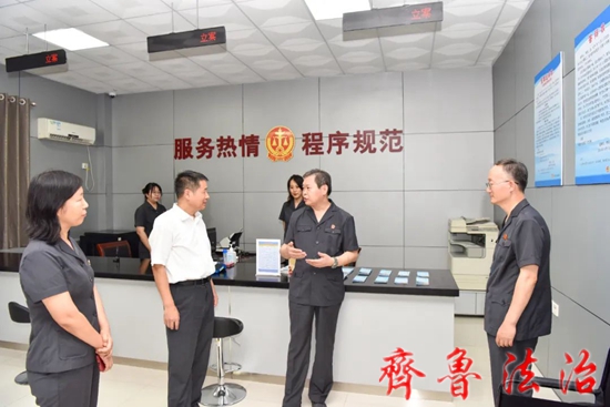 7月20日上午,东营市中级人民法院党组成员、副院长孙洪武及各县区法院分管人民法庭工作的院领导、人民法庭庭长等一行16人到东营区法院辛店法庭现场观摩调研