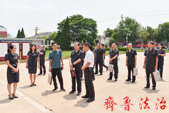 齐鲁法治(东营讯)李春军 7月20日上午,东营市中级人民法院党组成员、副院长孙洪武,审判委员会专职委员梅雪芳,民事审判庭负责人及各县区法院分管人民法庭工作的院领导、人民法庭庭长等一行16人到东营区法院辛店法庭现场观摩调研,东营区法院党组书记、院长丁文强,东营区委政法委分管日常工作的副书记王保军等陪同观摩调研。