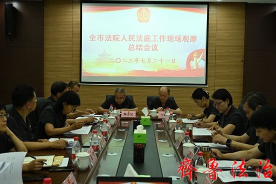 7月21日,东营市人民法庭工作现场观摩团到垦利区人民法院胜坨法庭、永安法庭进行现场观摩,并在永安法庭召开总结会。东营中院党组成员、副院长孙洪武参加观摩活动并作总结讲话。