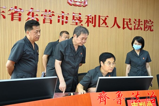 齐鲁法治(东营讯)李春军 7月21日,东营市人民法庭工作现场观摩团到垦利区人民法院胜坨法庭、永安法庭进行现场观摩,并在永安法庭召开总结会。东营中院党组成员、副院长孙洪武参加观摩活动并作总结讲话。