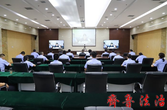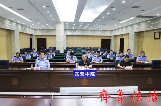东营中院政工部门负责同志、法警支队全体法警在东营分会场参加会议。