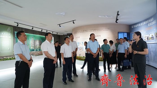 齐鲁法治(东营讯)李春军 7月20日下午,省司法厅党委委员、副厅长何旭带领省观摩团一行到黄河口生态保护法庭开展全省沿黄地区生态保护和高质量发展调解工作一体化工作观摩活动。东营市司法局党组书记、局长徐峰,垦利区委副书记、区长解洪涛,副区长、区公安分局局长王国杰,垦利区法院党组书记、院长张志刚等陪同活动。