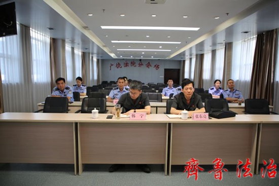 7月20日下午,全省法院司法警务工作会议在山东省高级人民法院召开,东营广饶法院在视频分会场参加会议