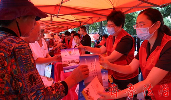 7月7日,由东营市法院承办,与市委宣传部共同组织,市妇联、市机关事务局、市油地校融合办、市税务局、东营银行等单位共同开展了“夏日送清凉 普法进社区”组团式志愿服务活动。