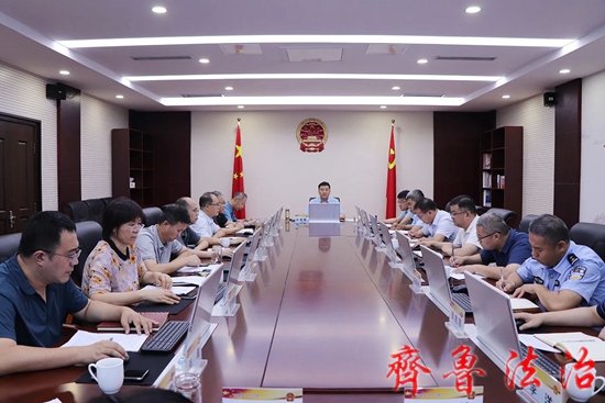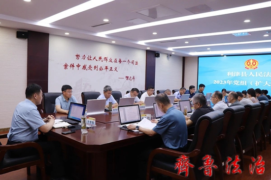 齐鲁法治(东营讯)李春军 7月10日上午,东营利津法院召开党组扩大会议,传达学习习近平总书记在上海合作组织成员国元首理事会第二十三次会议上的重要讲话精神,对防汛救灾工作作出重要指示精神,视察东部战区机关时重要讲话精神,在江苏苏州、南京考察时的重要讲话精神,听取业务庭室上半年工作开展情况,对做好下半年工作进行安排部署。党组书记、院长孙学军主持会议并讲话,班子成员、专委、执行局长、各庭室负责人参加会议。